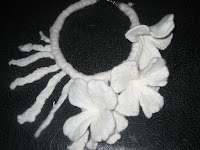 Заброшены игрушки и взята шёрстка в руки. Опять осваиваю мокрое валяние. На улице дождь а у меня цветут цветы. Навалялась парочка брошек и колье.